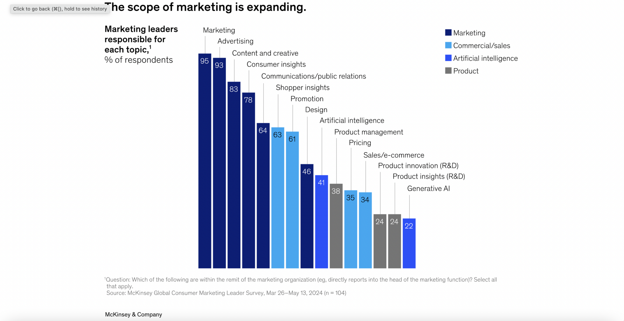 A recent McKinsey report surveying C-suite-level marketing and growth officers from CPG and retail companies revealed what the industry has known for some time: the purview of the CMO has expanded… yet again.