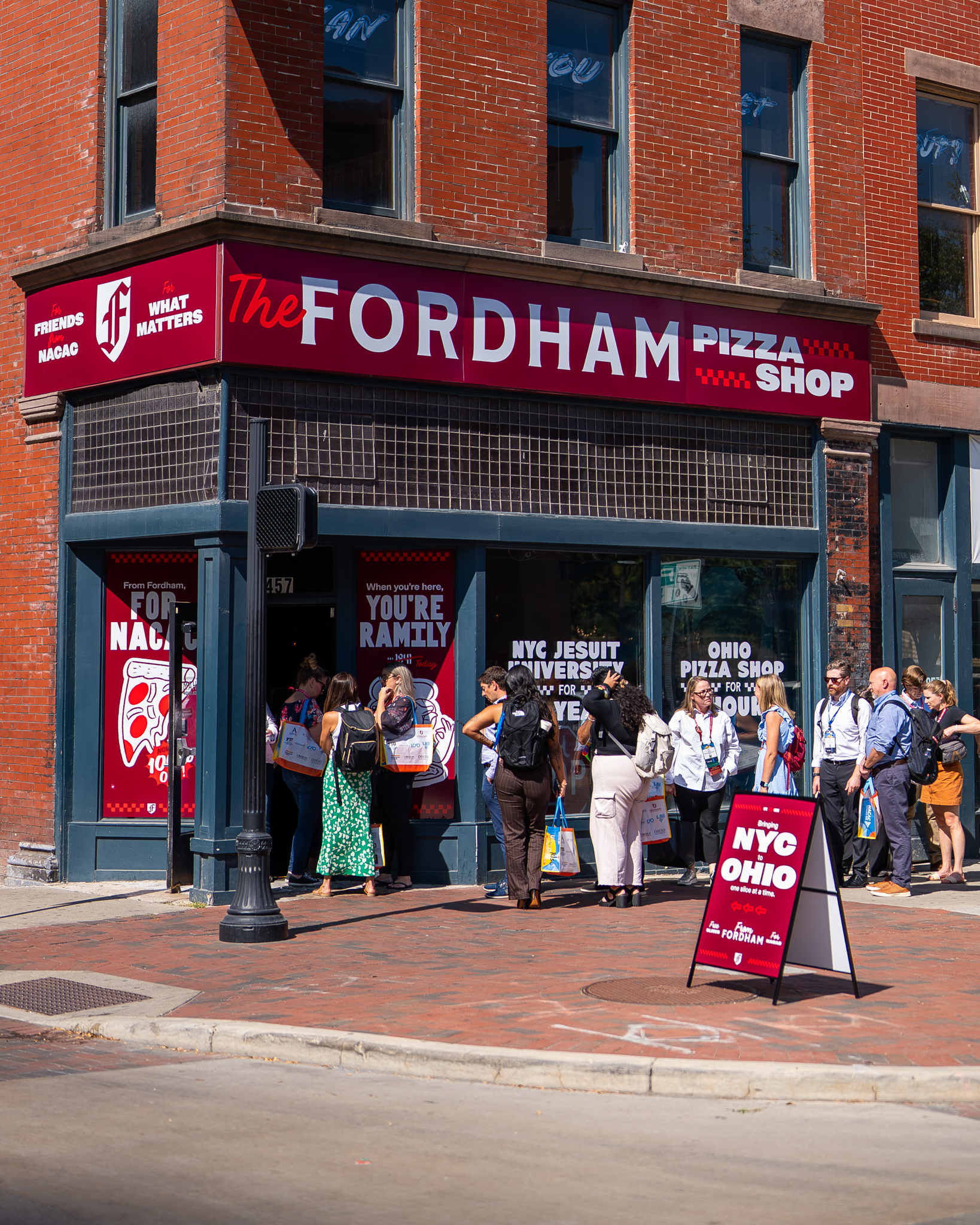 This past year, it was in Columbus, Ohio, and we actually took over a pizza shop across the street from the conference center and invited all those high school guidance counselors to come over to the pizza shop, which we renamed the Fordham Pizza Shop, in order to create a branded experience, to have them come in and get a taste of New York, and get a taste of Fordham while they were at NACAC.