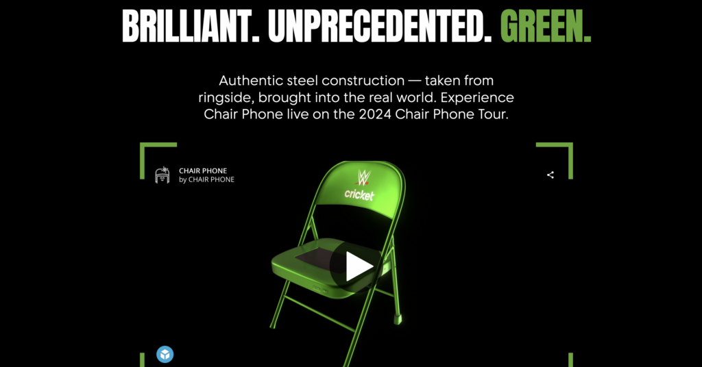 Cricket Wireless, presenting partner for both nights of the recent “Countdown to WrestleMania XL” show, took advantage of this excitement for its latest marketing stunt. In an effort to stand out in the crowded 5G messaging space, the mobile carrier constructed a quirky new invention that incorporated one of WWE’s most beloved and infamous ringside props: the folding chair. The resulting creation is the world’s first 5G-powered chair, which can actually make calls, send texts, play music, stream video and—naturally—doubles as a fog machine.