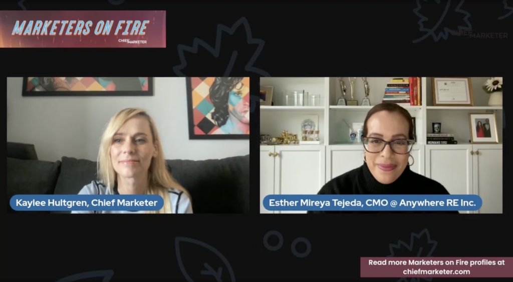Chief Marketer’s Brands on Fire and Marketers on Fire editorial series highlight the brands and the people that are shaping, pushing and disrupting the marketing industry. These high-level strategic talks, found on Chiefmarketer.com, include a profile on Anywhere Real Estate CMO Esther-Mireya Tejeda, our most recent guest on our LinkedIn Live series.