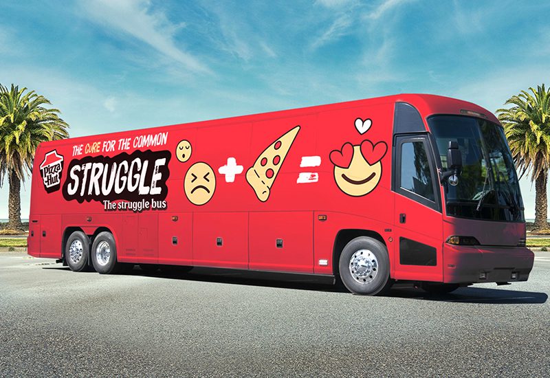 In a creative, pop culture-forward mobile tour, Pizza Hut delivered for millennial and Gen Z consumers who were “on the struggle bus”… by showing up in an actual struggle bus. Event Marketer explores how the IRL pop culture meme—full of comfort food, relaxing videos, selfie opportunities and even beds for power napping amid pepperoni pizza-themed blankets—cruised to success.