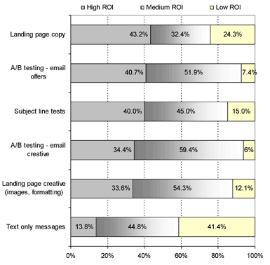 My favorite result: Copywriting really, really matters. The three best ROI tests had more to do with words (copy, offer, subject line) than with design or graphics.